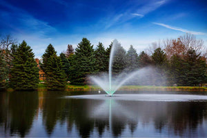 The Skyward is the perfect fountain for commercial and residential applications.  This distinct fountain projects a cone of flowing water, highlighting a powerful water column in the center.  This fountain's unique feature gives you the ability to adjust the center column's height to your ideal size.  Larger horsepower models are available for even greater center column heights.  The Skyward is also practicable by enhancing the aquatic environment's health, improving the water clarity by circulating water, and creating oxygen transfer.  Optional light packages are available to give an even more stunning look to this fountain.